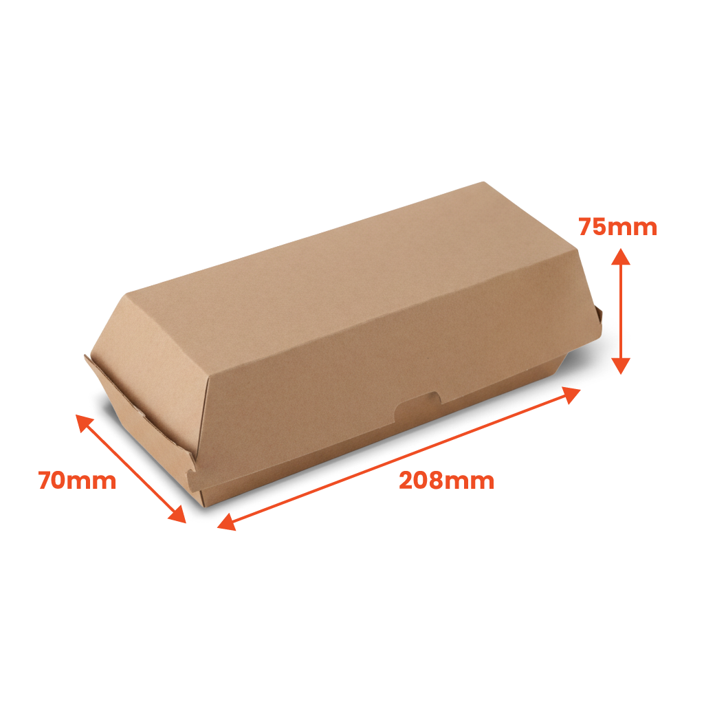 Compostable Kraft Hotdog Box - CB4 - 208 x 70 x 75mm (Pack of 200)