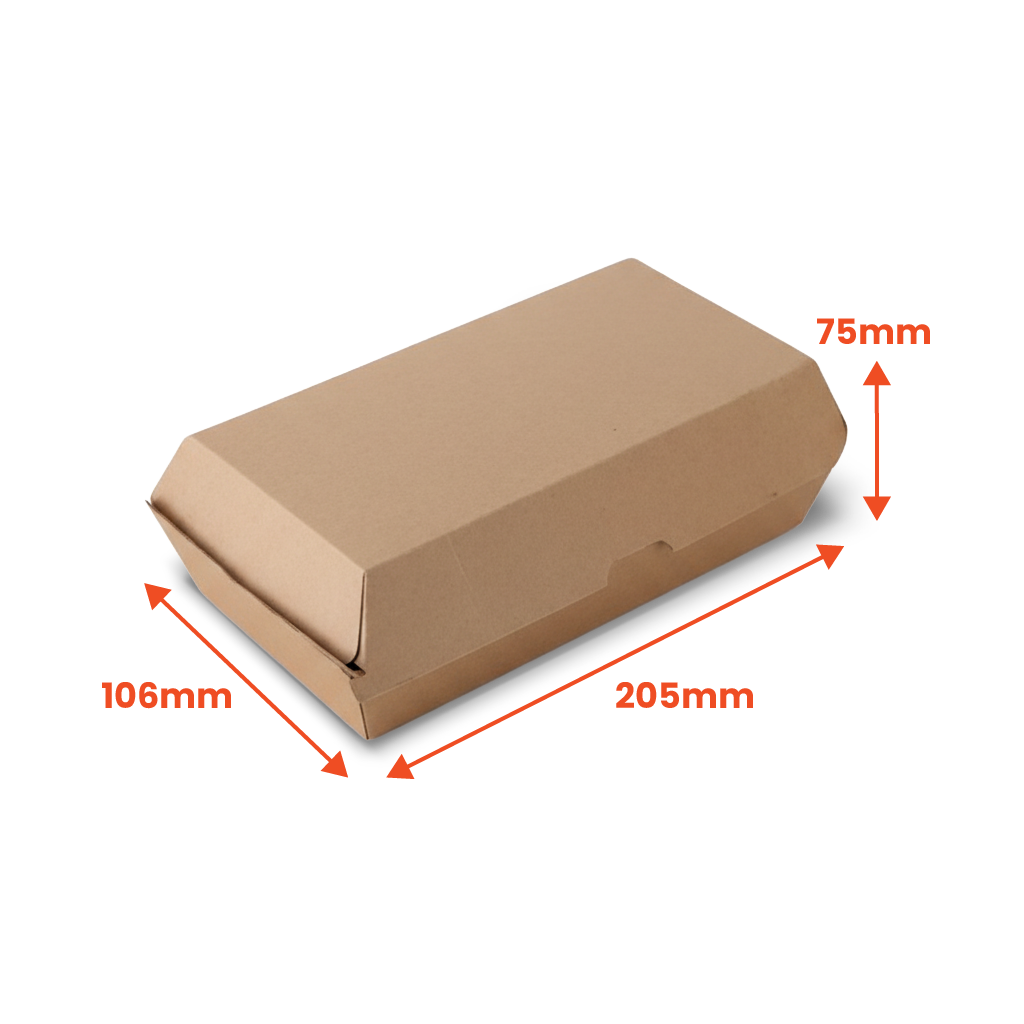 Compostable Kraft Snack Box - CB8 - 205 x 106 x 75mm (Pack of 200)