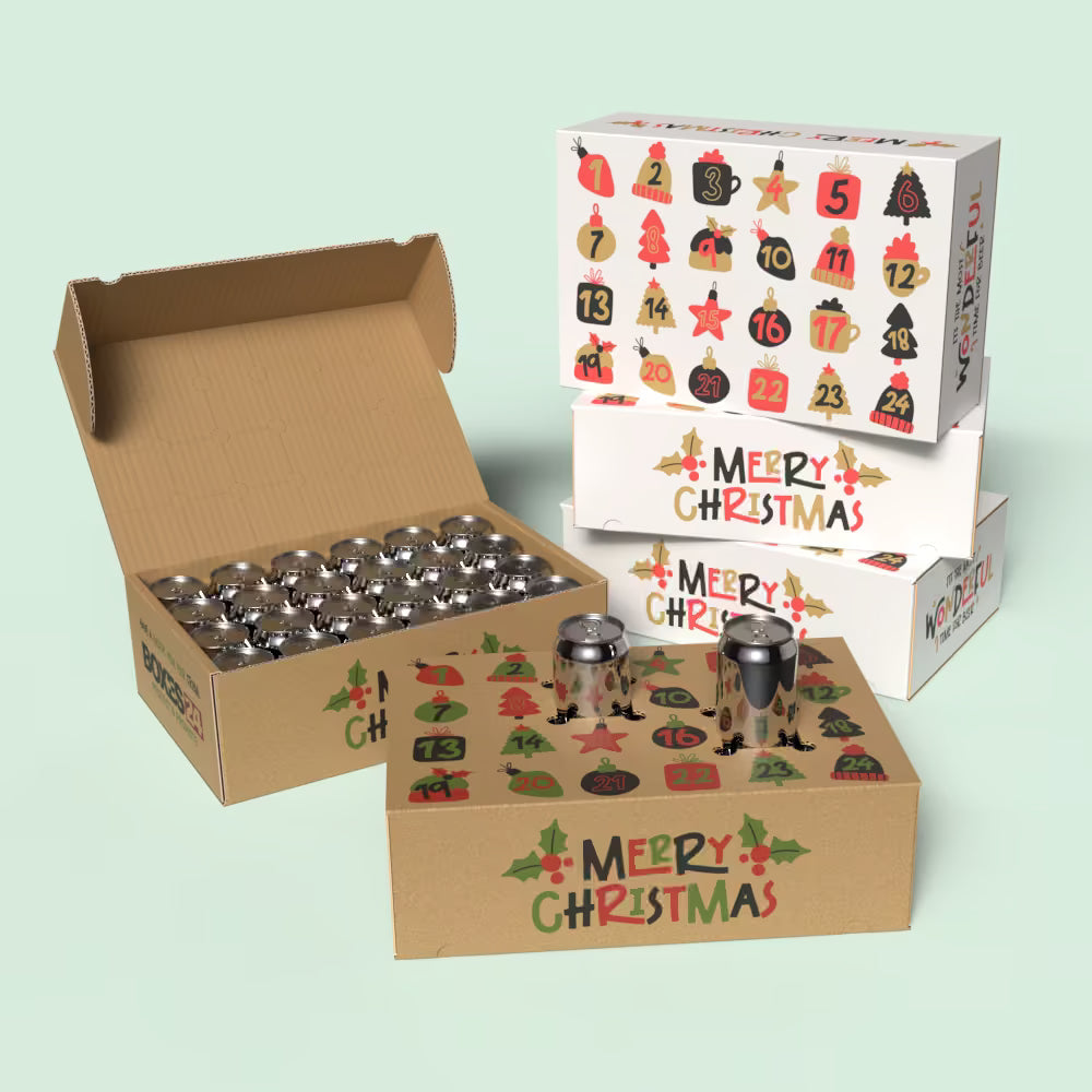 The Beer Advent Calendar Box White securely holds 24 x 375ml cans with perforated daily openings. Perfect for breweries, corporate gifts, and retail promotions, this premium white board carton can be fully custom printed or easily branded with your logo on our festive Xmas template.