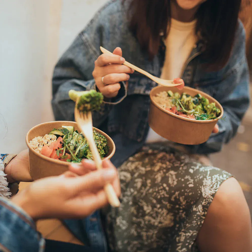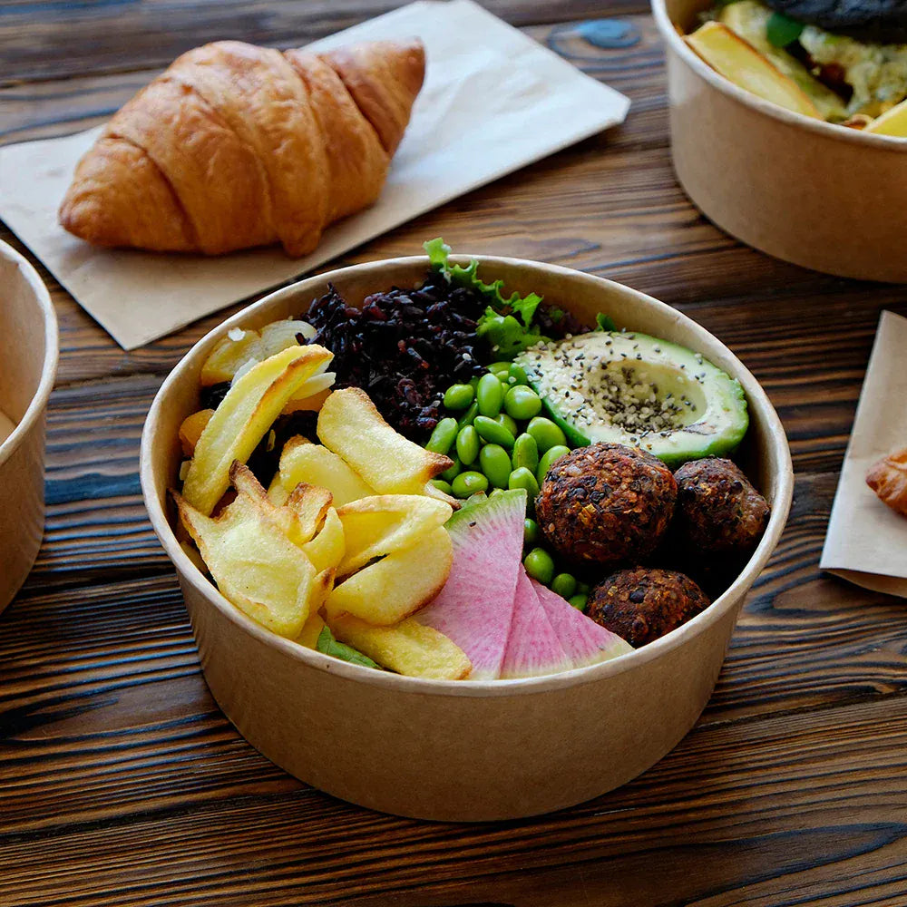 These 1000ml kraft paper round salad bowls are perfect for larger takeaway meals such as salads, poke bowls, pasta and rice dishes.