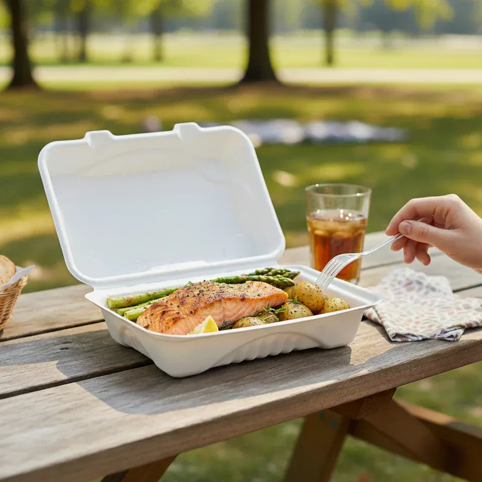 9x6" Sugarcane Takeaway Clamshell Container (Pack of 250)