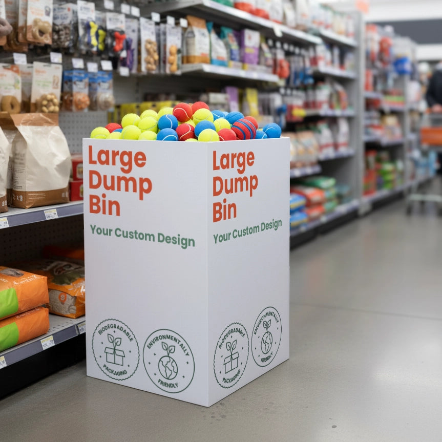 Need a smart way to display larger quantities, bulky items, or special promotions? Our Dump Bin Large in Full Custom Print offers a high-impact, space-efficient solution designed to grab attention and drive sales. All-over branded POS bin with eco-friendly matte finish, built for bulk stock and retail campaigns.